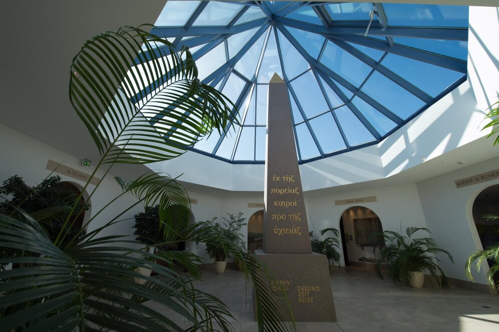 Schon in normalem Thermalwasser kann ich gut regenerieren. In Weißenstadt setzen sie aber noch einen drauf: Rund um ein Atrium mit einem sieben Meter hohen Obelisken führen Eingänge zu sieben Mineralienbädern. Die kann man einzeln genießen oder je nach Lust und Laune auch kombinieren. Ich starte auf gut Glück im sogenannten Energie- und Lebensfreudebad – und suche dort vergeblich nach Wasser. Davon gibt es in der Wüste eben recht wenig, Sand dafür umso mehr. Und so reibe ich mich wie einst schon die alten Ägypter in Abu Simbel mit warmem Sand ein. Das soll nicht nur entschlackend wirken und den Stoffwechsel anregen, sondern macht mich vor allem auch richtig munter.
