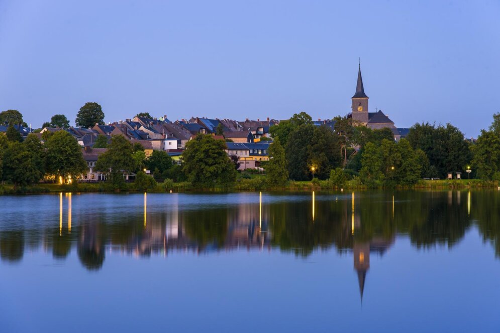 Welcome to Weißenstadt! Von der A9 ist es nur ein 15 Kilometer-Katzensprung, aber sofort fühle ich mich mitten auf dem Land – Roggenfelder in den Tälern, Wald auf den Hügeln, in der Ferne die Gipfel des Fichtelgebirges. Ich werfe mein Gepäck im Siebenquell Gesundzeitresort ab und mache einen Abendspaziergang. Dass der länger dauert als geplant, und dass ich es nicht mehr rechtzeitig zurück zum Abendessen schaffe, liegt an zwei Dingen. Zum einen am Weißenstädter See, 50 Hektar groß, wo mich der Rhythmus schwappender Wellen und das Fiepen turtelnder Haubentaucher die Zeit vergessen lassen. Das Idyll ist der perfekte Ort zum Runterkommen nach einer stressigen Woche! Zum anderen liegt es daran, dass ich an diesem Abend ungeplant versacke.