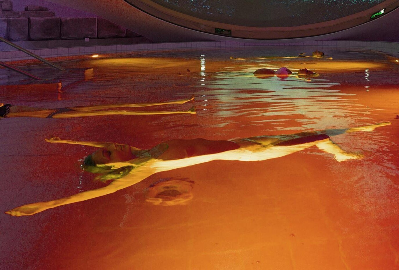 Aus dem alten Ägypten lasse ich mich nun ins Römische Reich beamen, um im Dampfbad meine Lunge durchzupusten. Dann besuche ich für einen Kälte-Kick die Griechen, die schon vor Pfarrer Kneipp darauf schwörten, Abwehrkräfte mit kalten Güssen zu stärken. Nach einem kurzen Stopp im Calcium-Lithium-Bad (hilft Knochen und Muskeln und soll stimmungsaufhellend wirken), mache ich den Abschluss im Toten Meer. Auch das haben sie nämlich in Weißenstadt nachgebaut, zumindest einen kleinen Teil. Schwerelos im Wasser schweben: Das ist für mich Entspannung pur.