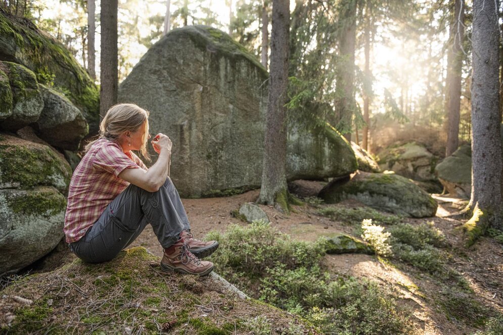 Der Trend kommt aus Japan, doch hier ist der perfekte Ort für „Shinrin-Yoku“, was so viel wie „Baden in der Waldluft“ heißt. Dass Waldbaden viel mehr als ein einfacher Waldspaziergang ist, lässt sich am besten mit einer ausgebildeten Waldgesundheitstrainerin spüren – zum Beispiel mit GESUNDES BAYERN-Expertin Elke Seidel. Die angebotenen Wanderung mit Achtsamkeitsübungen im magischen Fichtelgebirgswald dauert rund drei Stunden.
