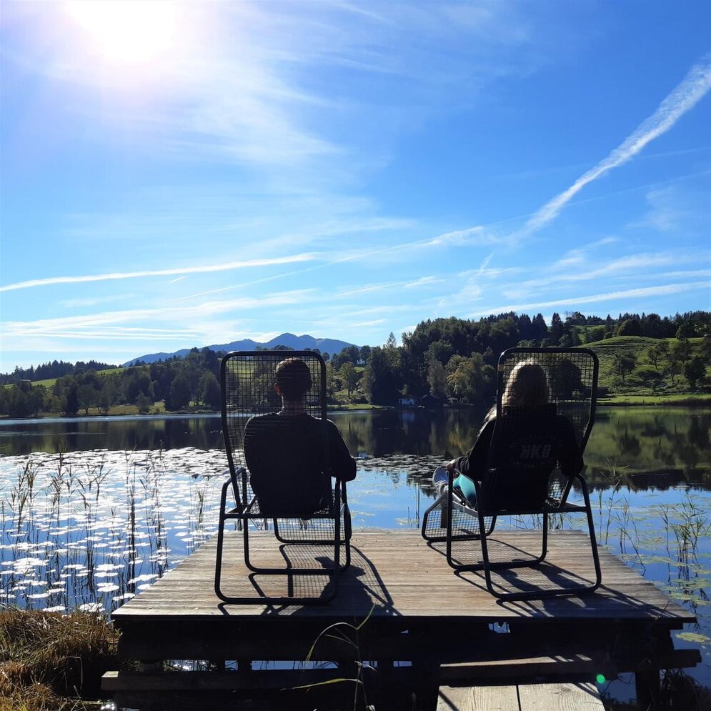 Danach noch einmal eine Pause am See - die Holzliegen auf dem Steg sind frei.