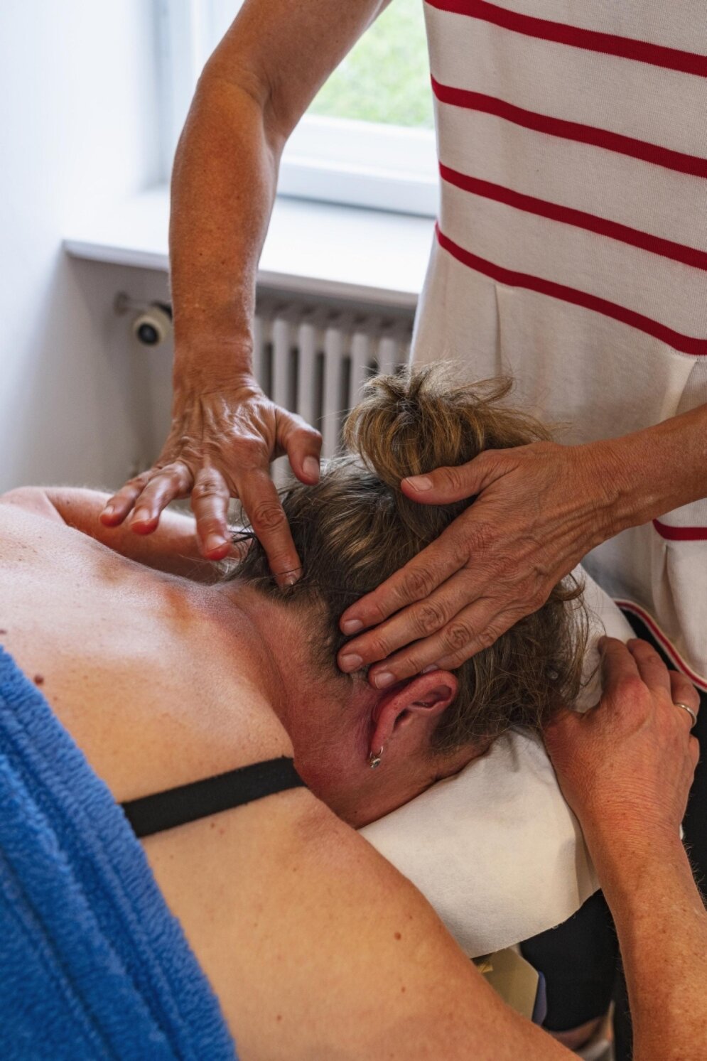 Vorher erwartet mich aber Christa Opitz-Böhm im lichtdurchfluteten Massageraum der Villa Höfler, die zum Komplex des im Herbst 2016 eröffneten VitalZentrums am Rande des Gabriel-von-Seidel-Kurparks gehört. Die Massage-Therapeutin arbeitet nach der „Neuro-Auricular-Technique“, bei der Akupressur mit der Anwendung ätherischer Öle in therapeutischer Qualität kombiniert wird. Ihre zarten Klopf- und Zupfbewegungen kreisen um meine Schädelbasis und ein wenig die Wirbelsäule hinab. „Von da kann ich den ganzen Körper erreichen“, erklärt Christa, während sie eine „Stress Away“ genannte Mischung aus Limette, Vanille, Lavendel und Zedernholz in meine dankbare Haut massiert. Es funktioniert: Ich fühle mich entspannt und gleichzeitig neu belebt.