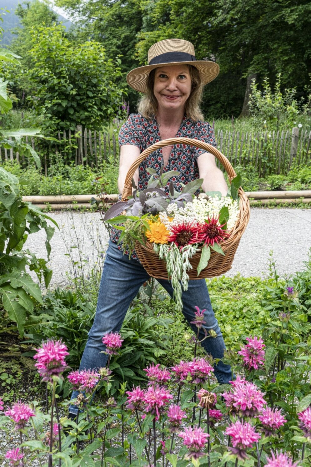 Meine Sinne reagieren jedenfalls überaus positiv auf den herb-würzig duftenden Strauß aus zart grünen und farbenfroh blühenden Kräutern, den wir unter ihrer Anleitung pfücken durften. Die tiefroten und rosafarbenen Blüten der Goldmelisse stechen besonders hervor, Ringelblumen fügen weitere Farbtupfer in Gelb und Orange hinzu. Eigentlich ist das alles viel zu schön, um es zu essen, denke ich – und werde dann doch die erste Ringelblume meines Lebens verspeisen…