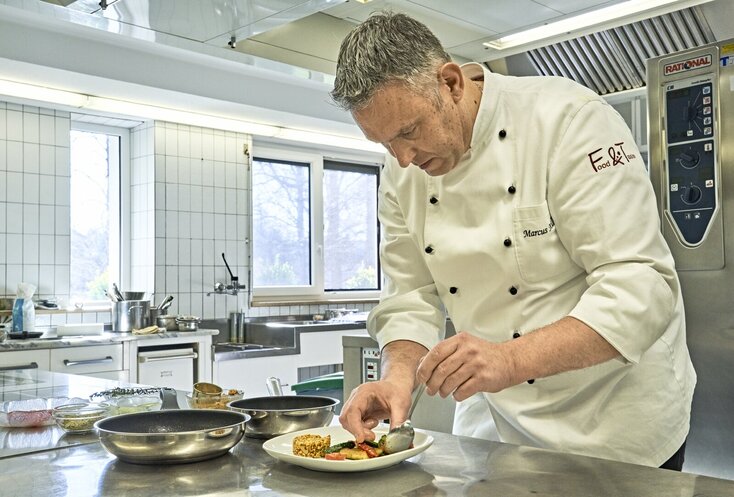 Zu Sebastian Kneipp fand Marcus Müller erst durch die Liebe: Anfang des Jahrtausends, nachdem er als Koch in internationalen Luxushotels die Welt bereist hatte, als er dann zu seiner Partnerin nach Bad Wörishofen zog. Bis dahin hatte Müller nur wenig von der ganzheitlichen Lehre des Naturheilkundlers gewusst, außer dass Kneipp ab der Mitte des 19. Jahrhunderts hier in der Stadt lebte und wirkte – und dass Wassertretbecken in Kurparks gerne nach ihm benannt sind. Doch dann fing Müller an, sich einzulesen und sich gerade mit der Ernährungsphilosophie als einem der fünf Elemente der Kneipp-Lehre intensiver zu beschäftigen: In einer Zeit, in der auch in der Gesellschaft ein Umdenken hin zu bewusster Ernährung begann, als sich Nouvelle Cuisine nicht mehr dadurch definierte, einfach nur genug Butter in die Soße zu geben. „Es begann eine Zeit, in der man immer mehr Wert auf hochwertige Öle wie Leinöl oder gutes Rapsöl legte“, meint Müller, heute der Küchenchef im Bad Wörishofener Kneippkurhaus St. Josef, „in der auch wie einst bei Kneipp die Bedeutung von Kräutern und Heilpflanzenimmer wichtiger wurde.“