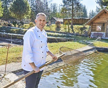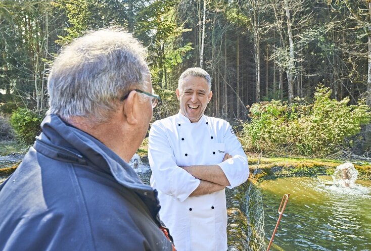 In Bad Wörishofen ist ein kulinarischer Lieblingsort die idyllisch mitten in der Natur gelegene Fischzucht Waldmühle von Simon Schmiddunser. Im Hofladen gibt es sehr feine, selbstgeräucherte Forellen aus dem Buchenrauch.