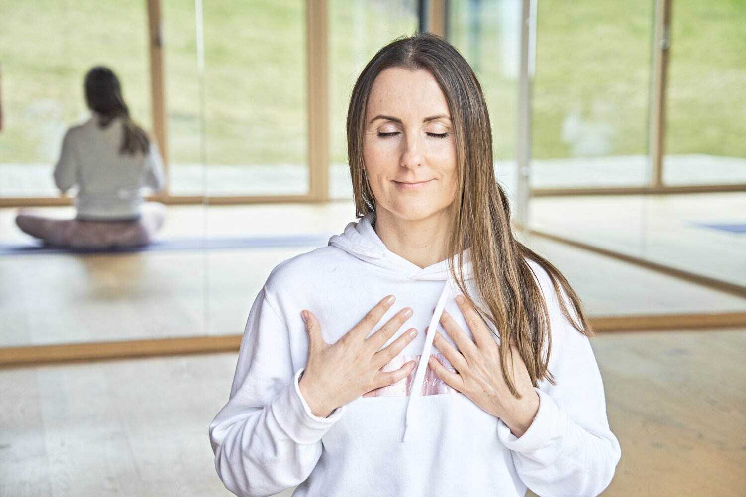 Wechselatmung, sechs Minuten lang, jeden Morgen. So viel Zeit muss für Susanne Lindlbauer sein, um gut und entspannt in den Tag zu starten. Wechselatmung, das bedeutet immer abwechselnd durch den einen Nasenflügel ein- und durch den anderen wieder auszuatmen, danach umgekehrt. Eine Übung, die die rechte und die linke Körperhälfte miteinander verbindet, die Konzentrationsfähigkeit fördert, das Immunsystem stärkt und auch das Herz-Kreislauf-System reguliert. „Diese sechs Minuten jeden Tag in der Früh sind für mich schon zu einem Ritual geworden“, sagt Susanne Lindlbauer, die Yoga-Lehrerin und GESUNDES BAYERN-Expertin aus Bad Griesbach. „So wie auch Yoga ein fester Bestandteil meines Lebens wurde.“ Als wichtige Stütze zu körperlicher und seelischer Stabilität.