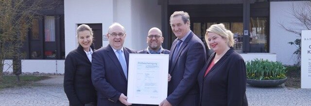 Rudolf Weinberger und Anja Bode vom Bayerischen Heilbäder-Verband (BHV) überreichten Bürgermeister Alois Brundobler die Urkunde für Bad Füssing. Anschließend händigten alle drei den am allergikerfreundlichen Netzwerk beteiligten Betrieben ihre Zertifikate aus - gemeinsam mit Sonja Kretschmar, Fachreferentin Tourismus bei TÜV Rheinland.