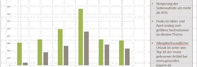 Die in diesem Jahr erstmals unter Gesundes Bayern realisierte Marketingkampagne "Allergikerfreundlicher Urlaub" ist sehr erfolgreich verlaufen. Der projektspezifische Marketingmix erreichte die Zielgruppe u.a. mit ganzseitigen Advertorials in wichtigen Print-Medien (Gesamtauflage 700.000 Stück), über wichtige Online-Portale, wie z.B. netmoms.de mit über 10.000 views und dazugehörigen Facebook-Posts mit Reichweiten von über 25.000.