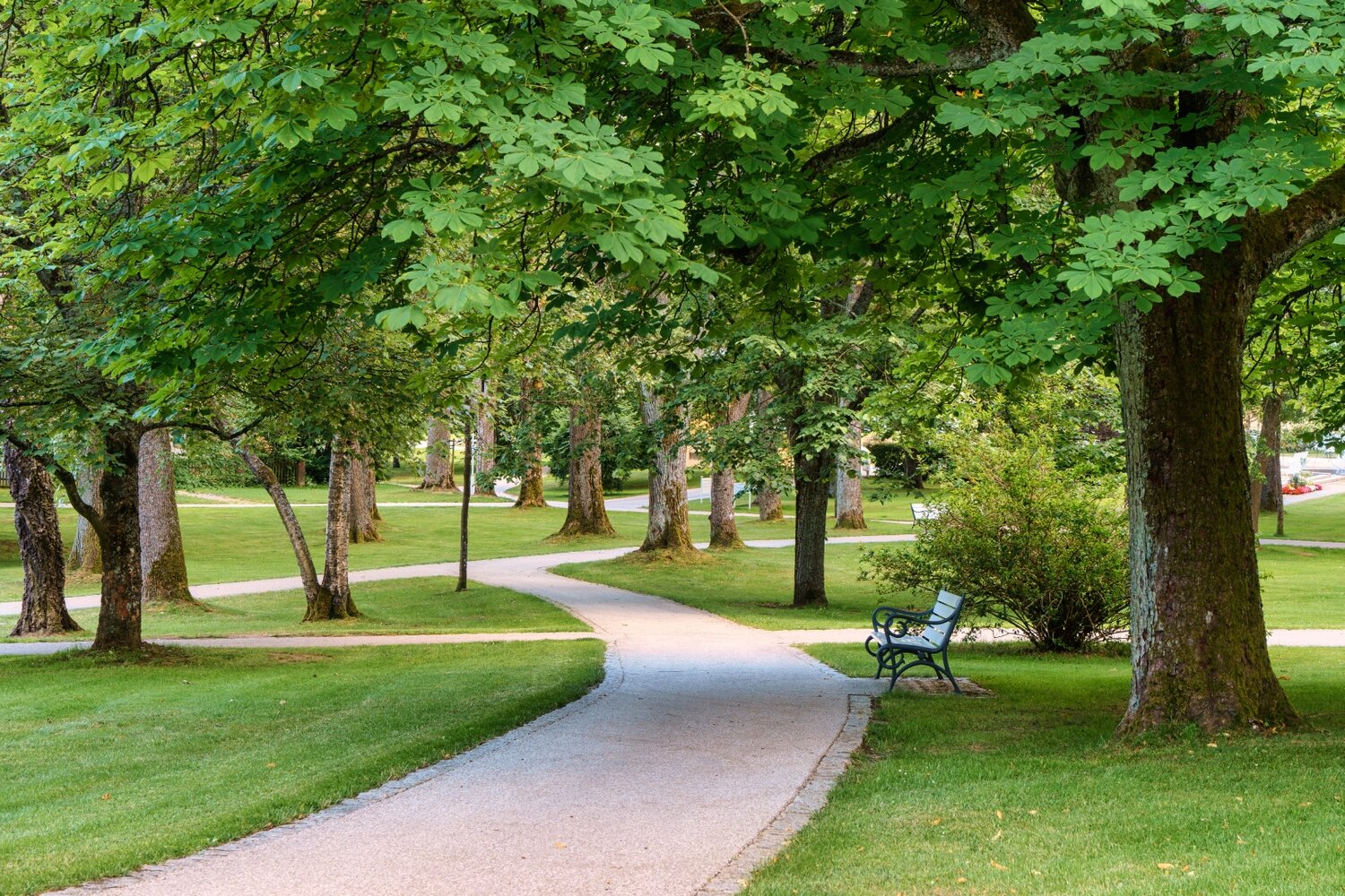 Bei schönem Wetter schallt die Musik dann bis auf die großen Grünflächen des Kurparks. Er wurde unter der Federführung von Prinzregent Luitpold von Bayern entworfen: Für ihn inszenierten die Gartenarchitekten Arthur und Wolfgang Singer einen natürlichen Landschaftspark in englischer, spätromantischer Form, der seit 2010 sogar unter Denkmalschutz steht. Großzügige Freiräume wechseln sich seitdem mit Blumen- und Pflanzenrabatten ab, zwischen April und Juni blüht ein zauberhaftes Meer aus Rhododendren, im Süden lockt ein herrlich duftender Rosengarten mit barocken Steinfiguren und idyllischen Sitzmöglichkeiten. Auch zwei weitere bedeutende Bauten gehen auf den Prinzregenten zurück: die lichte, von Säulen gesäumte Wandelhalle von 1910 und das ein Jahr später errichtete Staatliche Kurhaus, in dem inzwischen das Grafikmuseum Stiftung Schreiner untergebracht ist.