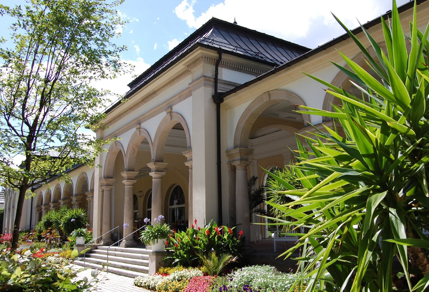 Um die Erwartungen der Kurgäste zu erfüllen, engagierte er seinen Privatarchitekten Leo von Klenze – sein Mann für klassizistische Ideen! Zu den Entwürfen Klenzes gehörte damals etwa schon die Walhalla bei Regensburg, die Befreiungshalle in Kehlheim sowie in München unter anderem der Königsplatz, die Alte Pinakothek und die Residenz. Sogar beim Bau der Eremitage in St. Petersburg war der Hofbaumeister beteiligt. Von 1837 an prägte er fortan also auch den Geist und das Gesicht Bad Stebens.