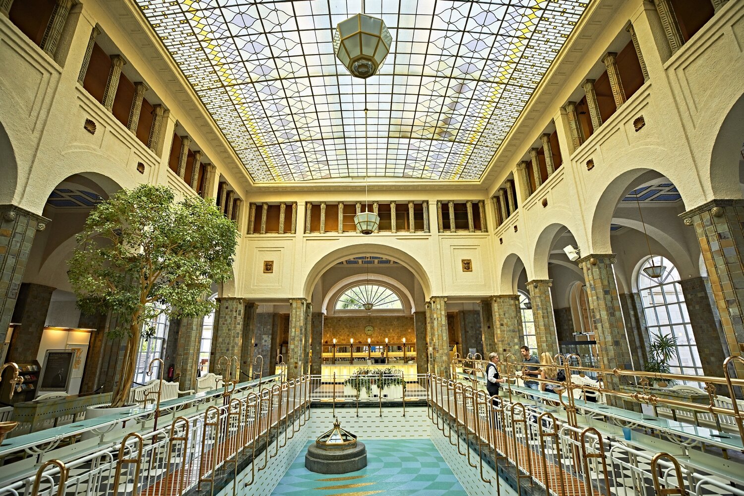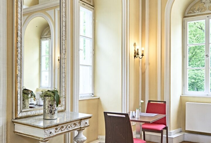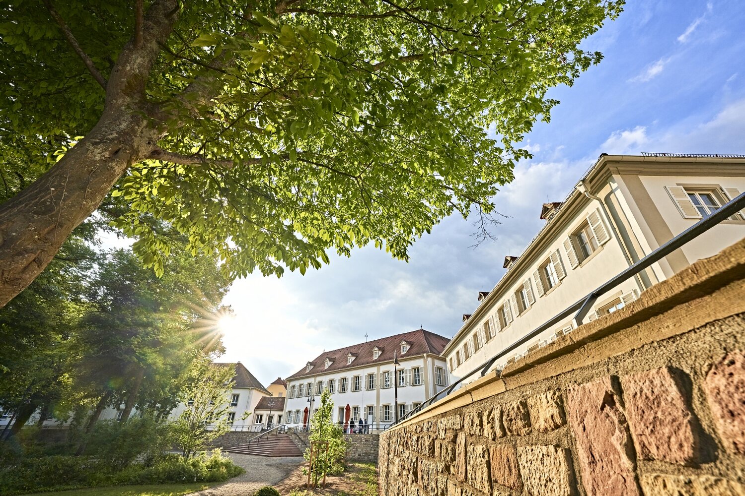 Fortan stand die stark eisenhaltige Balthasar-Neumann-Quelle im Fokus, die Geigel in den Brunnenbau integrierte. Teile der Anlage mit ihren lichten Säulenreihen wurden erst in den vergangenen Jahren erneut saniert. In einem modernisierten Seitentrakt lassen sich jetzt wie einst heilsame Anwendungen buchen. Wie damals dagegen wirkt der Saalbau mit dem Lesesaal: Die authentische Einrichtung versetzt einen augenblicklich zurück in die Biedermeierzeit. Um ganz in das historische Ambiente einzutauchen, übernachtet man am besten mittendrin: In den vornehmen Gebäuden rund um den kleinen, rautenförmigen Kurgarten lässt es sich in hübschen Zimmern logieren.
