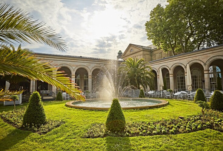 Kurgarten, Rosengarten und Luitpoldpark – Bad Kissingen, das seit Sommer 2021 zum UNESCO-Welterbe zählt, ist reich an Natur, die sich wie ein grünes Band durch das Staatsbad zieht. Das älteste Vermächtnis ist der zwei Hektar große Kurgarten mit seinen Linden und Palmen: Ihn ließ ursprünglich der Barock-Baumeister Balthasar Neumann im Auftrag des damaligen Würzburger Fürstbischofs Friedrich Karl von Schönborn-Buchheim um 1738 anlegen. Hundert Jahre später wurde der Garten neugestaltet, passend zu Friedrich von Gärtners stattlichem Arkadenbau, der das Areal seitdem schmückt.